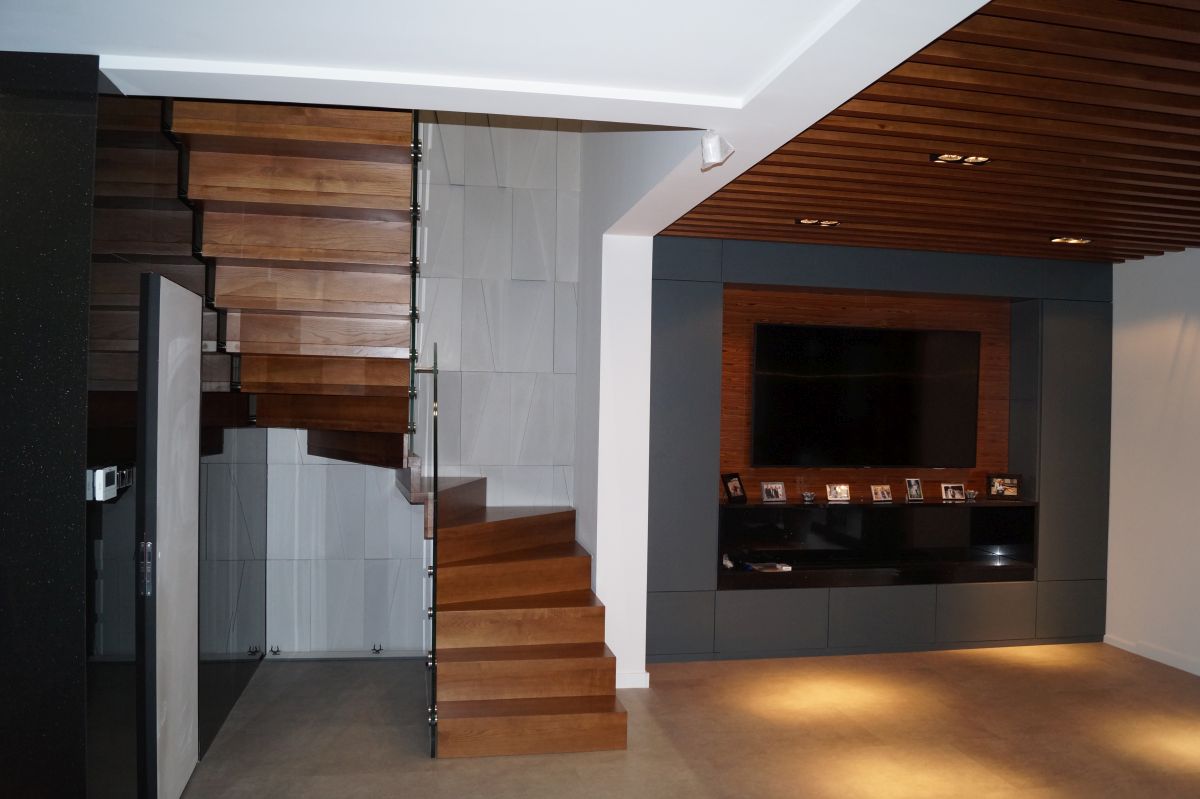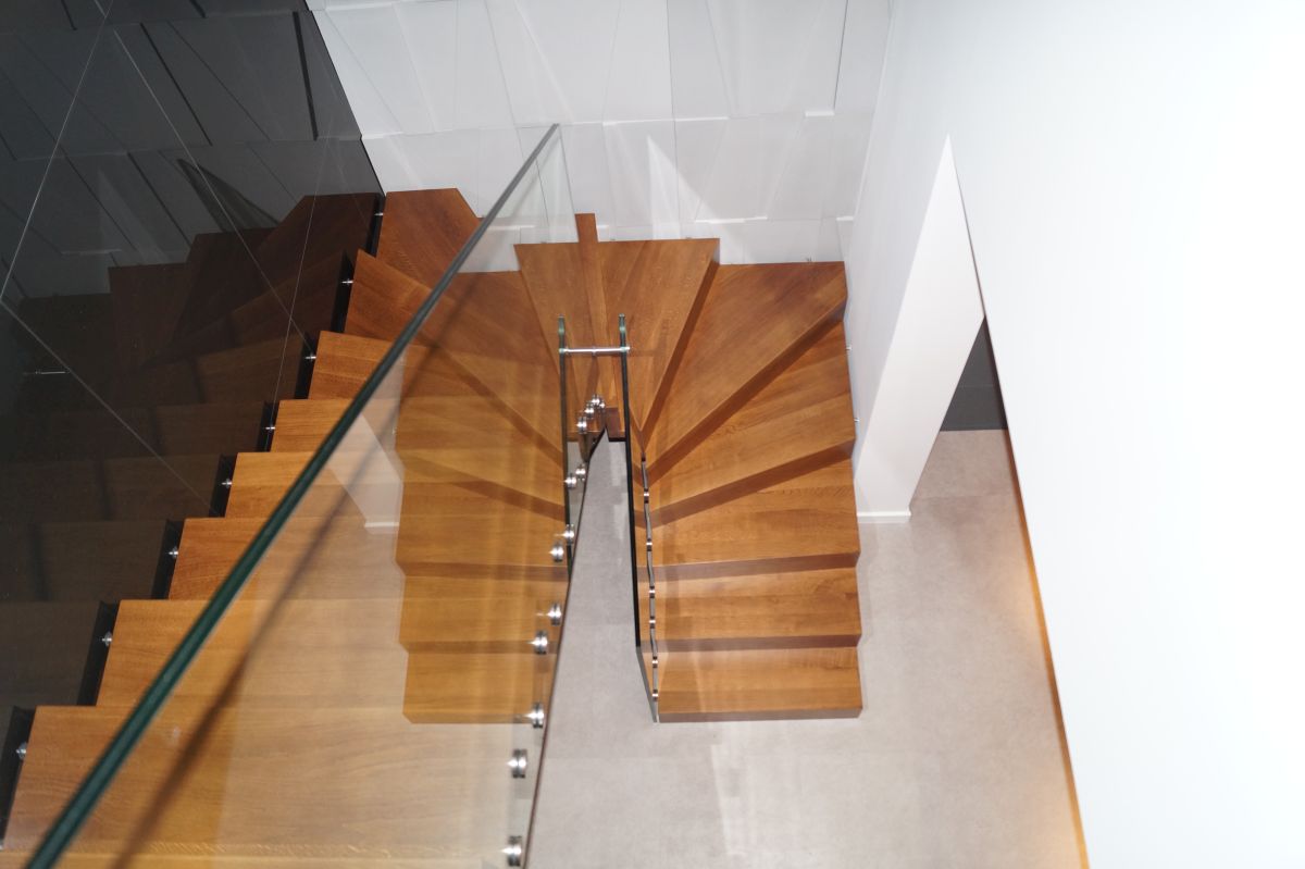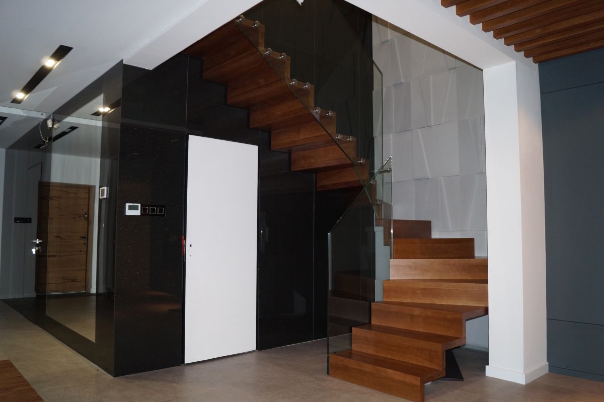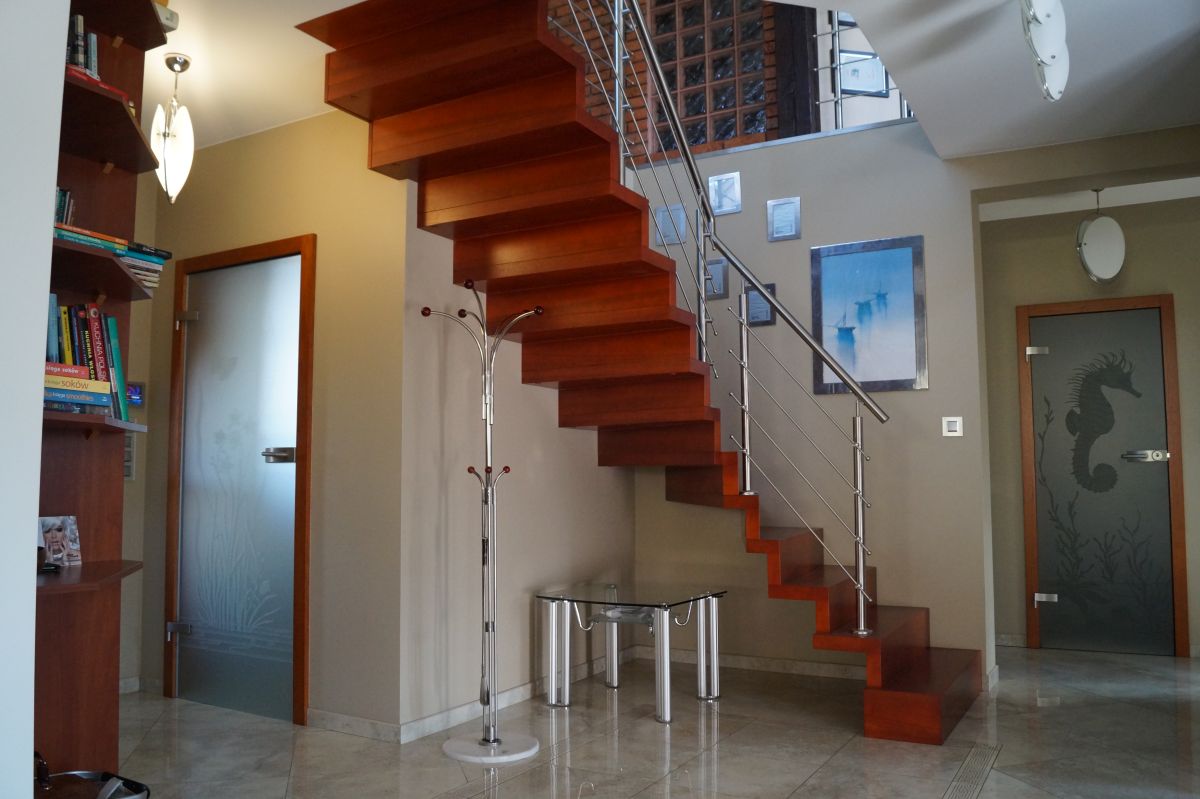 To, co szczególnie rzuca się w oczy to stopnie, które są na tyle szerokie, aby zachodzić na siebie. W ten sposób powstaje tzw. wizualny efekt dywanu. Dzięki temu konstrukcja schodów jest mniej widoczna i sprawia wrażenie bardziej otwartej, przestrzennej formy.