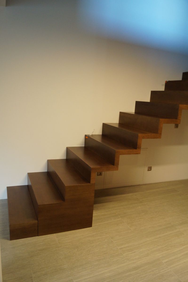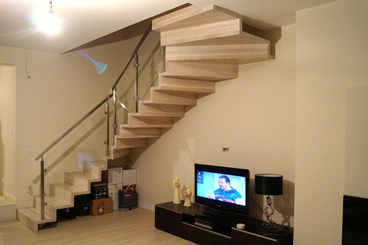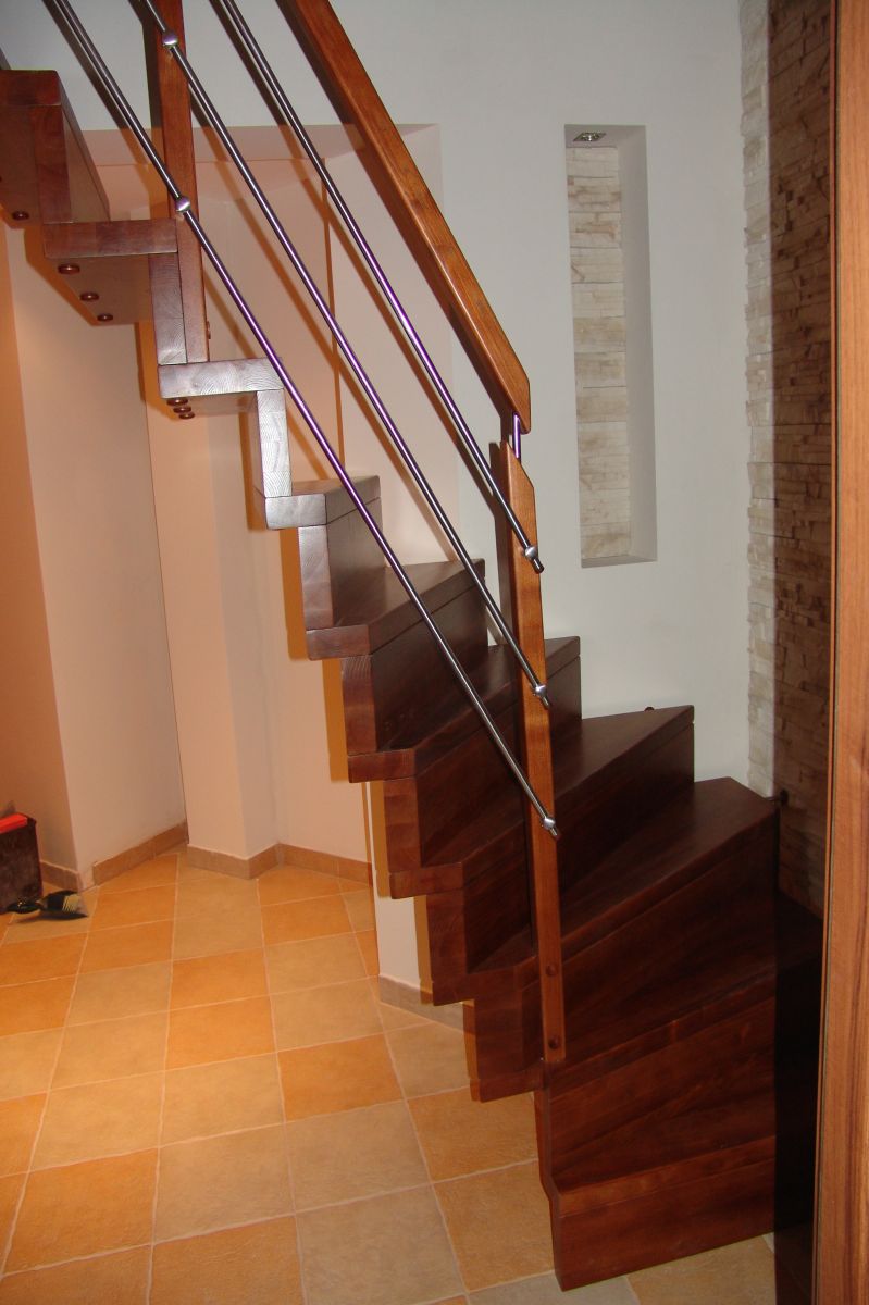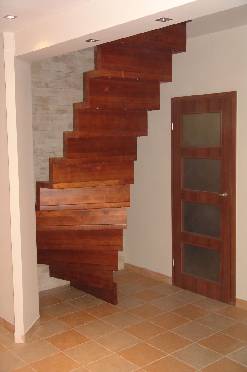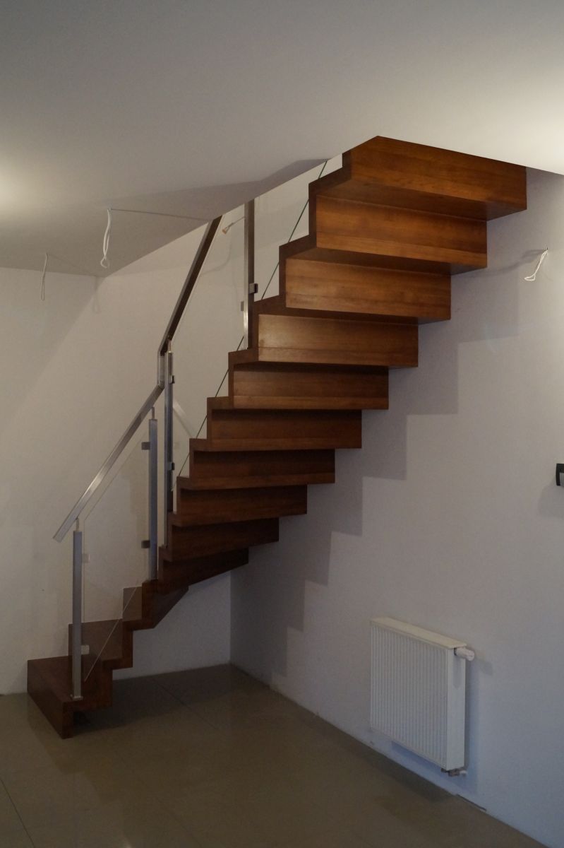 W naszej ofercie schodów drewnianych spośród wariantów dywanowych dostępne są także modele wspornikowe, które montuje się bezpośrednio do ściany, przy użyciu specjalnych wsporników.