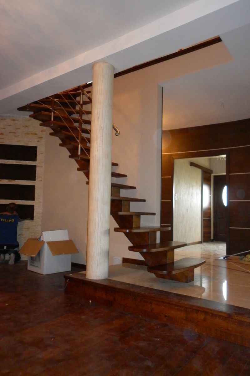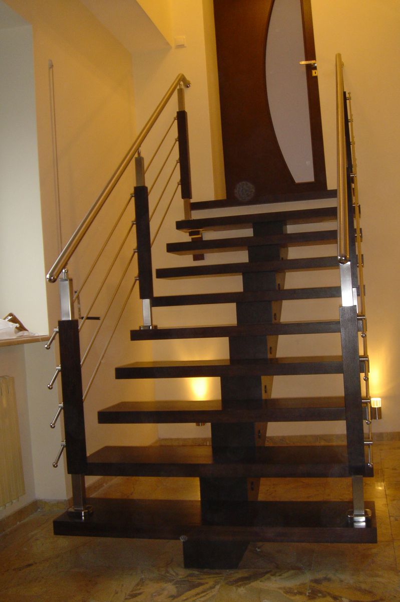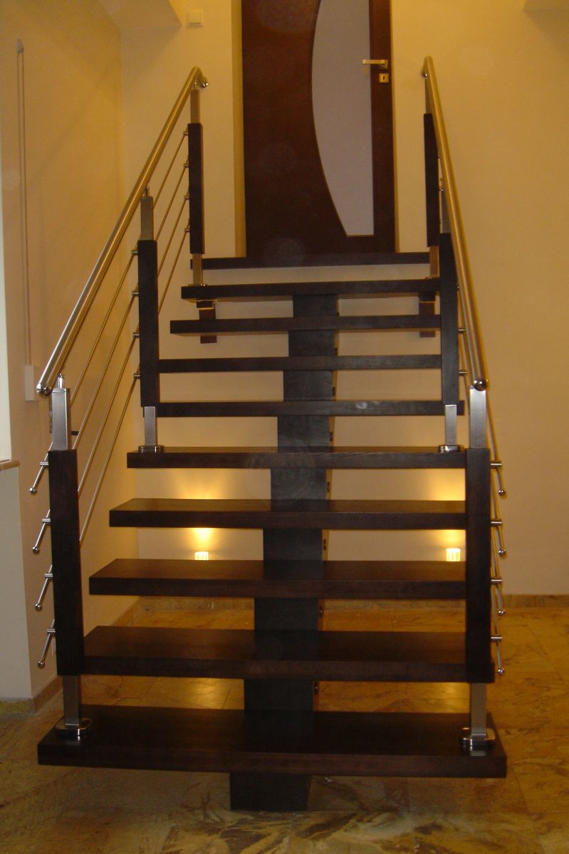 Dostępne w naszej ofercie schody na wandze to model, który opiera się na jednej belce wykonanej z drewna. Jest ona zamontowana w centralnej części biegu schodów i nadaje schodom wizualnej stabilności. Istnieje możliwość wykonania przez nas schodów na wandze w jednej tonacji kolorystycznej lub na zasadzie kontrastu – konstrukcja nośna i stopnie różnią się od siebie kolorystycznie. Przy schodach na centralnej belce nie możemy zastosować podstopni. Również przy tym modelu schodów istnieje kilka możliwości doboru balustrady, która nada dopełniania aranżacji wnętrza. Poprzez połączenie kilku różnych materiałów takich jak drewno, szkło czy metal uzyskujemy indywidualne rozwiązanie.